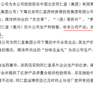 原标题:同仁堂回应“一年六上黑榜” :产品与上市公司无关