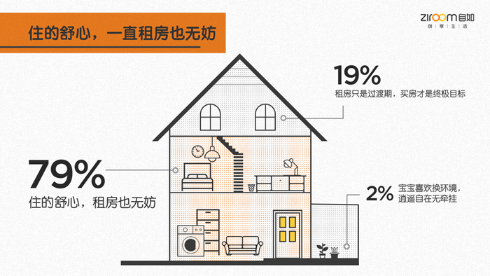 拥有35万间房源的中国最大的长租公寓品牌自如,曾发布过一份《中国一线城市白领青年居住生活报告》,调研了近万名自如友家、自如整租、自如寓的真实客户。其实79%的白领认为,只要住得舒心,租房也无妨。而只有19%的一线城市白领青年认为,租房只是过渡期,买房才是终极目标。