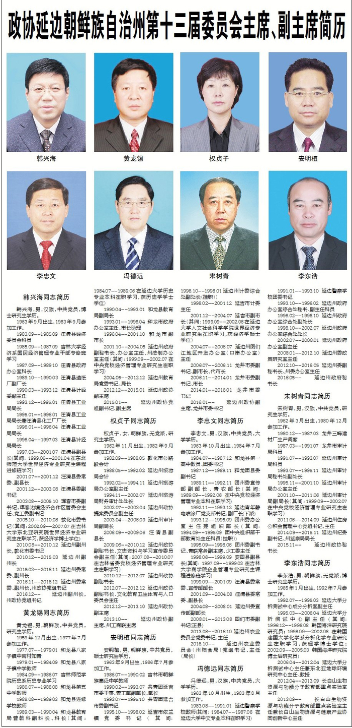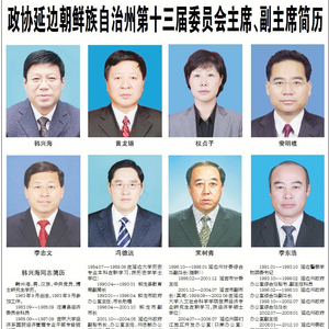 延边州十三届政协主席、副主席简历(主席韩兴海)