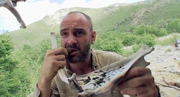 当时,埃德正在南美的巴塔哥尼亚拍摄纪录片,他需要在只有摄像机和紧急卫星电话的情况下在野外生存。他从一个小水塘里捉到了30只蝌蚪,因为他认为这种正在成长的两栖动物富含蛋白质。视频记录了他在吃下蝌蚪后由于恶心而扭曲的面部表情。他说,“我能感觉到我的胃在翻滚。真的太糟糕了。”