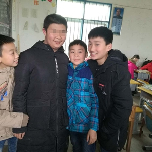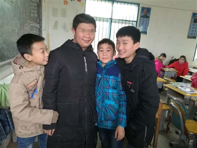 在巴中老家小学,与同学们在一起,小易(左二)觉得很开心