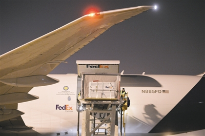 当地时间21日下午,“FedEx熊猫快递号”载着“宝宝”从华盛顿起飞,中国驻美大使崔天凯赶去为它送行。在16小时不间断飞行途中,“宝宝”享受了顶级待遇。波音777货机,是世界上最大的双引擎货运飞机,也是联邦快递全球机队中最大的飞机,乘客只有“宝宝”团队及其行李。专机机身喷绘了“宝宝”的照片。