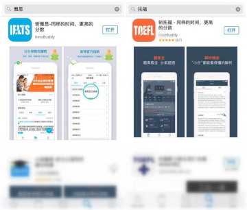 苹果应用市场搜索雅思、托福,斩雅思、斩托福位列搜索首位