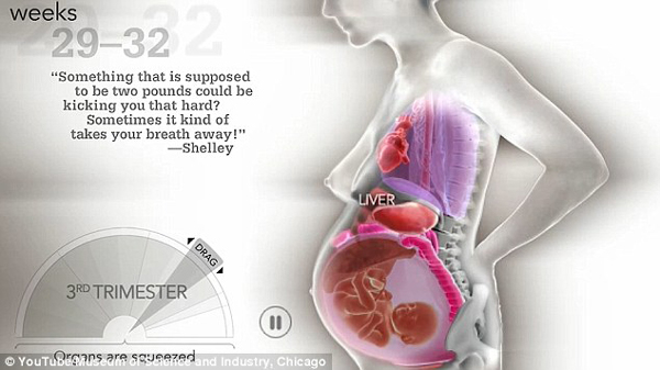 【环球网综合报道】 据英国《每日邮报》2月23日报道,近日,美国芝加哥科学工业博物馆制作了一则视频,展现了妇女怀孕时身体内各器官的变化过程,同时还配有不同的母亲描述自己怀孕期间的感受。用户可以自由地选择视频中的不同怀孕阶段进行观看。