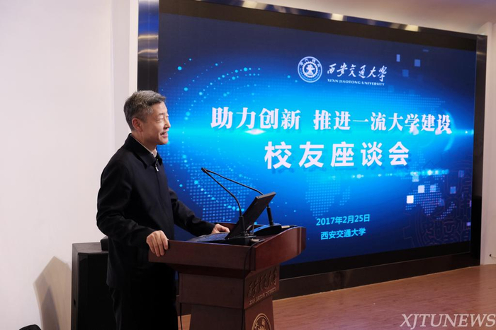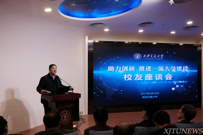 2月25日,“助力创新,推进一流大学建设”校友座谈会在交大钱学森图书馆星空报告厅举行。来自各地企业界的校友代表和海内外43个地区(行业)校友会负责人等120多位校友齐聚母校,就创新发展、中国西部科技创新港建设以及“双一流建设”进行了深入讨论交流。西安交通大学党委书记张迈曾、校长王树国、党委副书记宫辉、副校长王铁军参加了座谈会。座谈会由席光副校长主持。