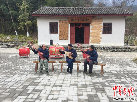 步入村子,一段民俗味十足的说唱,引起了记者的注意。随后,记者看到三个村民正在村口弹唱。据介绍,这段说唱是康中唱书,至今已有上百年,唱腔感情朴实,曲调舒缓自由,而老人手中的乐器是土琵琶和三弦。