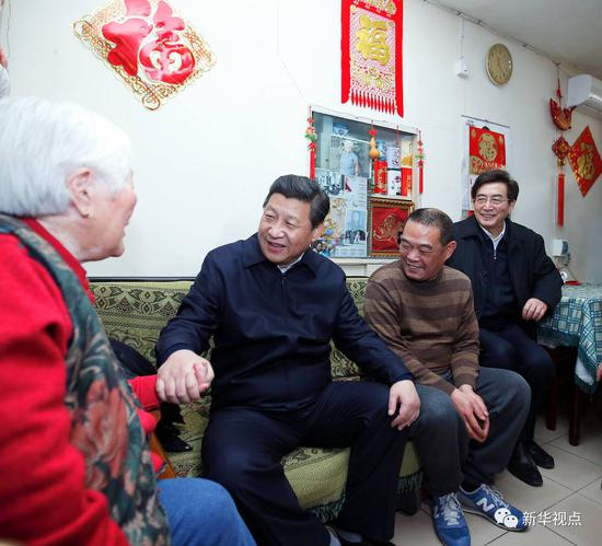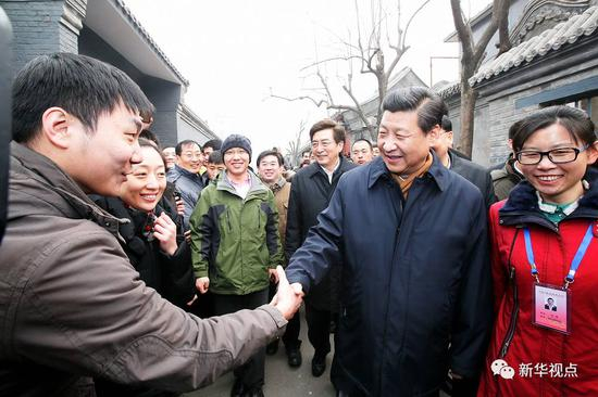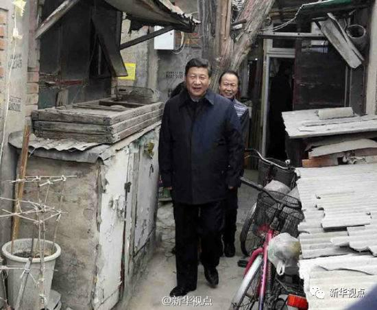 这是2014年2月,习近平在北京考察工作,走进雨儿胡同一个大杂院的场景。