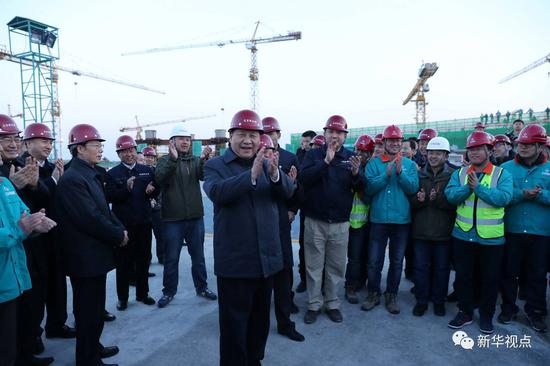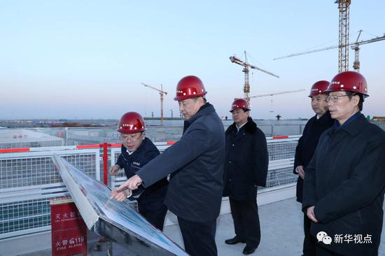 北京新机场建设正处在关键阶段。23日下午,习近平来到新机场建设工地考察。