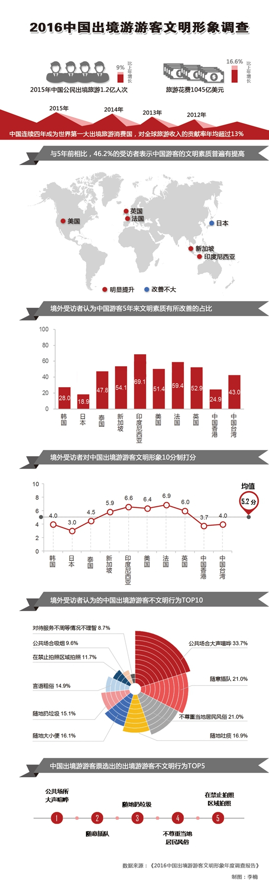2月22日,国家旅游局在福建厦门正式发布《2016中国出境游游客文明形象年度调查报告》(以下简称《报告》)。