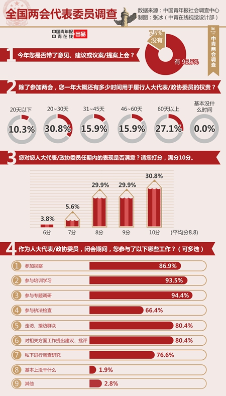 媒体:受访代表委员平均给自己履职表现打8.8分