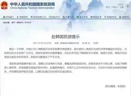 原标题:近期中国公民入境济州岛受阻多 国家旅游局提交涉