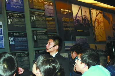 纪念馆工作人员介绍,讲解员队伍中,除了宁伟恒这样的馆内工作人员,还有大量的社会志愿者,来自南京晓庄学院、南京工业大学等8所高校。南京晓庄学院的志愿讲解服务队成立于1994年,每年有20多人利用双休日、节假日,到纪念馆为来自各地的参观者义务讲解。该学院大三学生李宜儒在这里讲解已有一年多,她告诉记者,做讲解志愿者不仅是背讲解词,平时还要找资料做功课,丰富这段历史知识。李宜儒认为,作为新时期的大学生,除了埋头学习,还要了解历史、关心国家大事。在纪念馆做了志愿者之后,她觉得当代青年应该有责任有担当,向世人传播历史真相是一种责任。