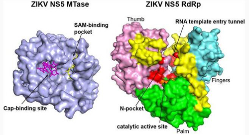 图注:寨卡病毒NS5结构揭示其保守的药物作用靶点
