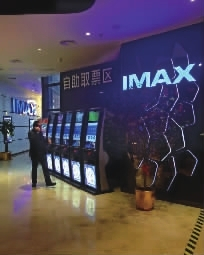 还是三四年前,影院周末必人满为患,影院大厅摆放大量凳子,等待观影的观众还得抢座位。随着消费方式的改变,观众可以不再因怕错过开场而在电影院苦等,现在影院仅几张桌子数把椅子随意摆放。人气最旺的是一排自助出票机,观众用手机买好电影票、选好座位后,直接在此拿纸质票。