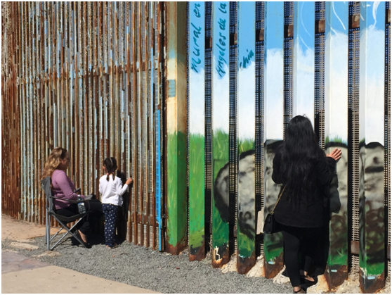 每周六或一些特定时间,一些墨西哥人会来到这堵墙前,等待那一头的亲人来墙边见上一面。虽然可以隔着铁丝网看到对方,但一个拥抱、一次亲吻都是奢求,因为在这堵墙边能站人的地方只容指尖通过。