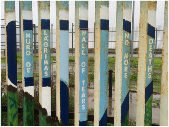 边界墙上涂鸦着“泪墙”(图中红框“wall of tears”)等文字。王骁波摄