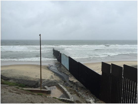 墨美边界墙最西端延伸到大海里。王骁波摄