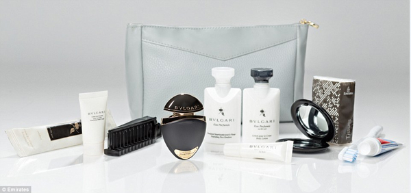 阿联酋航空公司为头等舱的乘客们提供了保湿家居服,此外还有一个宝格丽设计的棕色护理包,包内放有宝格丽香水、护肤霜、剃须刀及剃须膏等生活用品。法国航空公司为头等舱乘客提供的护理包内有一系列凯伊黛护肤品,此外还提供梳子、眼罩、耳塞、钢笔等物品。