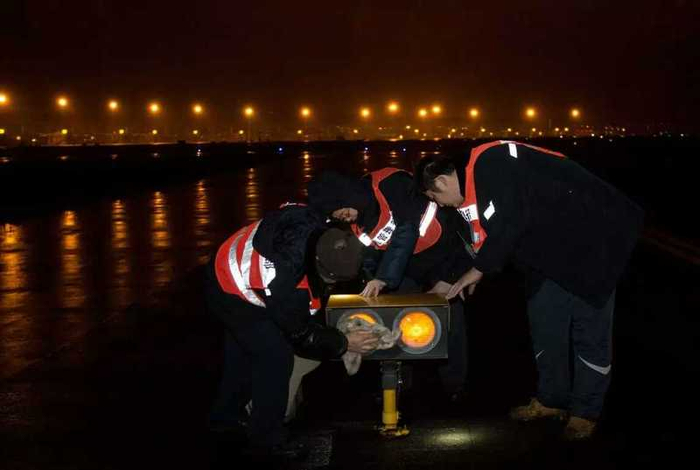 航班结束飞行后的这段时间,就是维护人员正在抓紧时间对助航灯进行维护,擦亮飞机起飞着陆的“眼睛”。