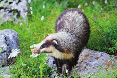 小时候就听过妈妈给我讲獾(妈妈发音tuan)的故事。妈妈的家乡在陕北的黄土高原,她说家乡有许多小动物,其中要数獾最淘气了,因为每年玉米成熟时,它就出来吃玉米棒子。獾可以站立起来压倒玉米杆,啃食玉米棒子,每晚都要祸害几十株,气得外公没有办法,只好每天晚上在田埂上点燃篝火来驱赶它。我听着妈妈的讲述想象着它的样子,獾这种动物,就在我幼小的心灵里披上了一层神秘的面纱。当我长大从事了自然保护事业,知道了妈妈所讲的动物獾便是猪獾。当然也知道了猪獾是一种杂食性动物,它的食谱上主要是以蚯蚓、青蛙、小鸟、昆虫、田鼠等为主,其次才是玉米、小麦、土豆等农作物。
