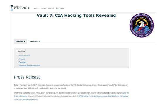 维基解密表示,目前中情局包括木马软件、恶意软件、病毒以及武器化的黑客工具已经失控,一些黑客工具在未授权的情况下在前美国政府黑客和承包商之间中散播,其中一人将这些资料提供给了维基解密。