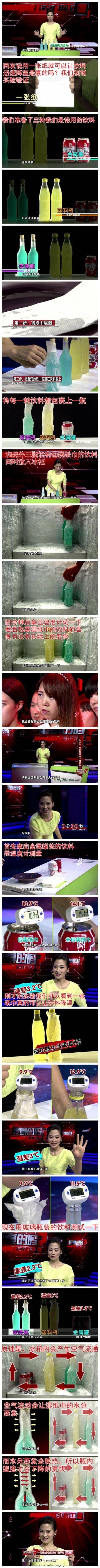 通过实验我们发现,一张纸巾就能让饮料快速降温,这个说法是真的!