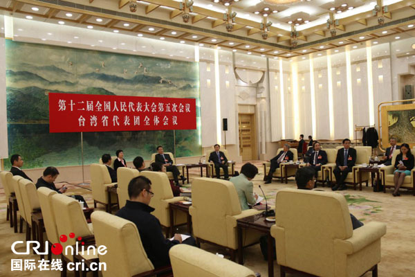 3月10日上午,十二届全国人大五次会议台湾省代表团开放团组会议在人民大会堂台湾厅举行。易成晨 摄