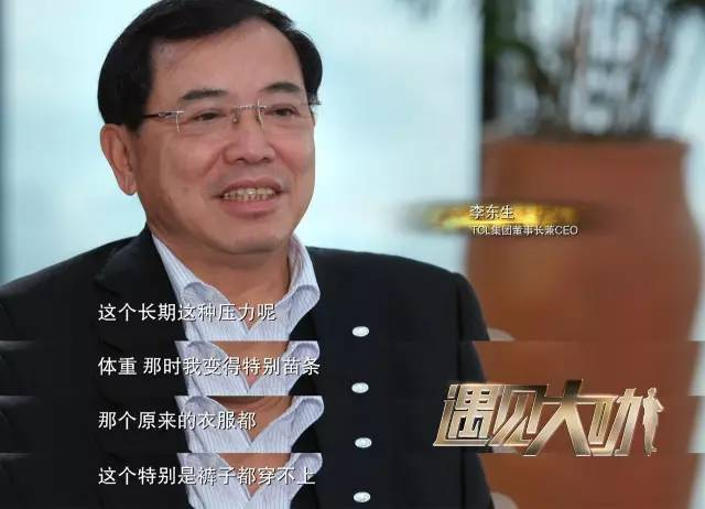 李东生:睡不好觉了,这个长期这种压力呢,体重这个那时我变得特别的苗条,那个原来的衣服,这个特别是裤子都穿不上。