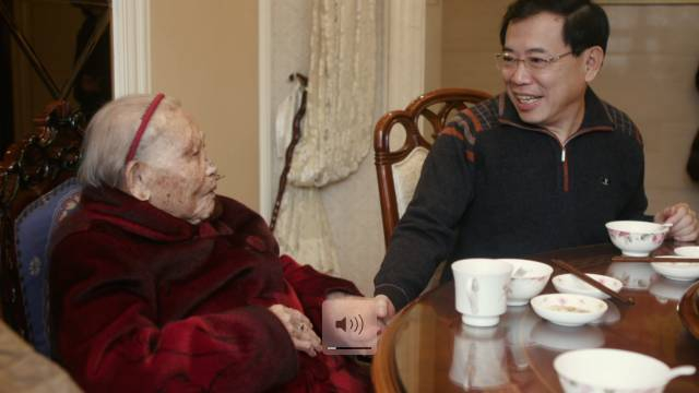 这是李东生在惠州的老家。这一位是他88岁的父亲,而这位老人是李东生的奶奶,今年107岁。