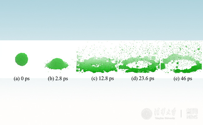 清华新闻网3月13日电 理解纳米液滴在与固体表面碰撞过程中的动力学行为是发展纳米喷墨、涂覆及纳米级3D打印技术中的一个关键问题。近日,清华大学航天航空学院陈民教授研究组利用分子动力学模拟的方法,在纳米尺度观察并分析了液滴在与固体壁面碰撞中的系列动力学行为,研究修正了前人对液滴变形的估计,并首次提出纳米液滴破碎的理论模型。相关研究结果以《纳米液滴在固体壁面碰撞的铺展与破碎》(“Spreading and breakup of nanodroplet impinging on surface”)为题,发表在日前出版的《流体物理》(Physics of Fluids)期刊上。