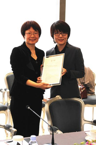 向华为北研所颁发北京大学就业工作系统师资培训基地牌匾