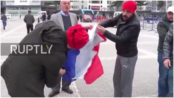 土耳其民众误烧法国国旗 土网友:同一坨狗屎