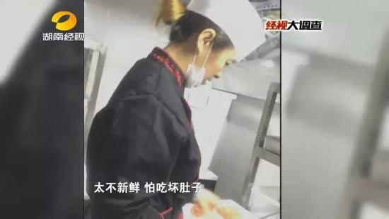 这样的三文鱼,赵姐也明显不放心,闻了闻三文鱼的气味,又把三文鱼贴到了寿司上。赵姐随后把腥味过重的三文鱼取了下来,丢到垃圾桶里。