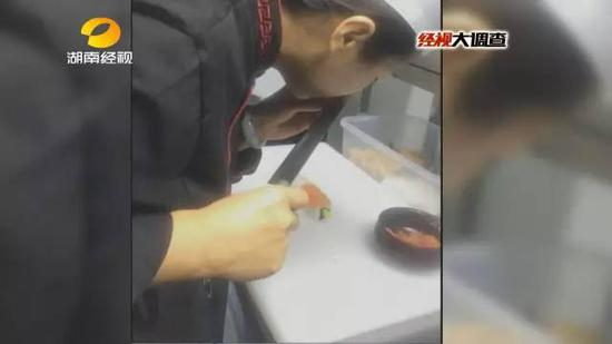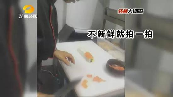 原来这些三文鱼已经冷藏了一个多星期了,不少肉块已经变了味。用这样三文鱼冒充新鲜三文鱼来做寿司,已经不是一次两次了。