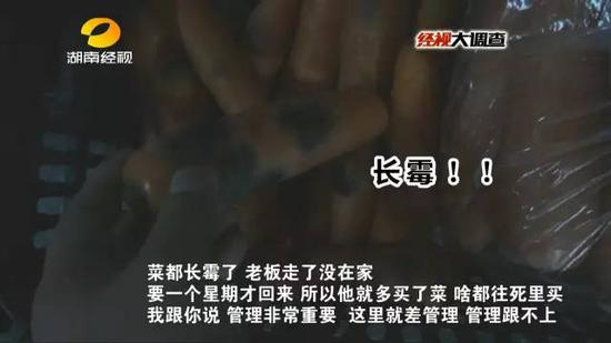 在后厨记者还发现,不少水果都已经放变质,胡萝卜都长了霉。