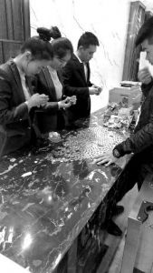 据了解,这两名顾客此前入住酒店时,因琐事与酒店工作人员发生口角,3月13日下午,两人带了数百元的零钱前来酒店入住,几乎全都是1角、5角硬币。无奈之下,酒店就让前台所有人都帮忙清点。
