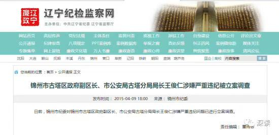 2015年4月9日 ,锦州市纪委通报:日前,锦州市纪委对锦州市古塔区政府副区长、市公安局古塔分局局长王俊仁涉嫌严重违纪问题已进行立案调查。