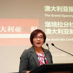 澳大利亚报业集团堪培拉分社社长郭燕在创刊仪式上致辞。 赖海隆 摄