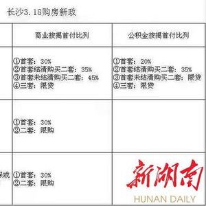 继3月17日北京、石家庄、郑州、广州楼市调控升级之后,今日,长沙紧跟着推出楼市调控新政,将首套新建商品住房首付比提至三成,并规定非本市户籍限购一套。新政从2017年3月18日起执行。