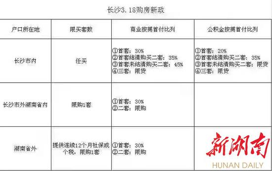 3、对在限购区域内无住房的非本市户籍家庭:湖南省外户籍家庭凭在长沙市连续缴纳12个月以上个人所得税或社会保险证明限购1套新建商品住房;属于省、市、区引进人才和公务工作调动的湖南省外户籍家庭凭有关部门证明限购1套新建商品住房;长沙市外湖南省内户籍家庭限购1套新建商品住房。