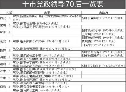 原标题:陕西十市换届 25名“70后”跻身党政班子