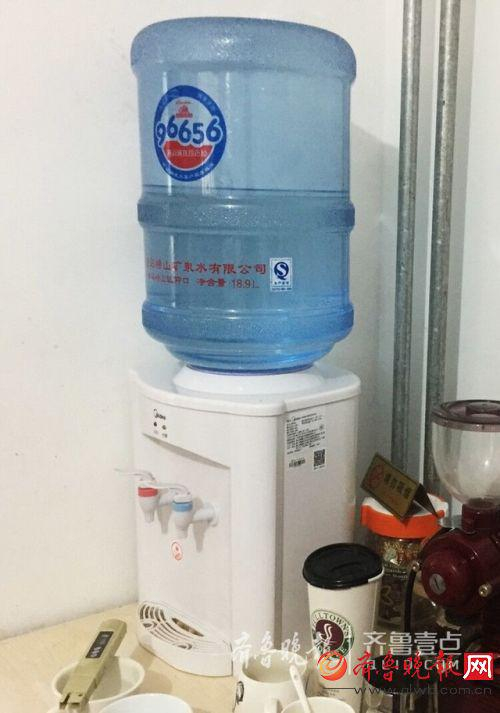 事实到底是不是像孙经理说的那样只是一个个例呢?对此,记者进行了调查。记者首先来到东海西路5号华银大厦负一层的润泽水站,这里摆放着大量桶装的崂山矿泉水,不时有送水工人开着三轮车载着大桶水往各处送水,就在记者采访过程中,一名送水工从水站搬出数桶崂山矿泉水,运往该楼15层的某电梯公司,随后,记者向该公司相关工作人员说明情况,取了一杯刚运来的崂山矿泉水进行了取样检测,TDS数值为10。