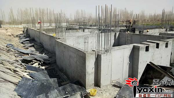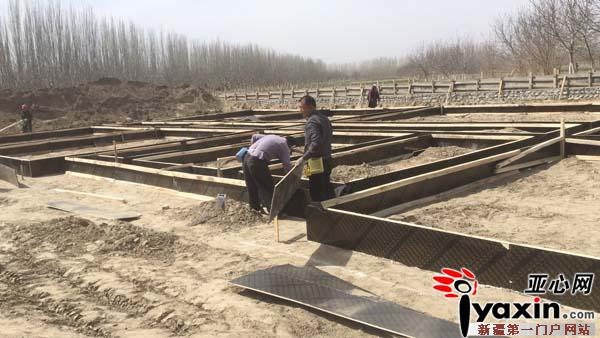 杭桂乡库木吾斯塘幼儿园工地工人正在支摸板