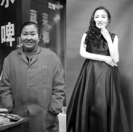 身穿华服,妆容精致,看着这三组照片,似乎很难将左右两个人划上等号。