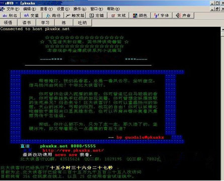 而另一方面,那个时候中国也有MUD游戏(也就是我们俗称的泥巴),但是这类游戏只是以文字的形式呈现在屏幕上,与其说是游戏更不如说是聊天室或者是互动式的小说,与我们现有的网游概念相差甚远。所以也难以被称之为网游。