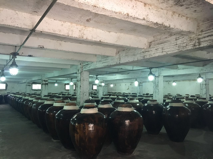 “茅台酒酿酒工业遗产群”之下酒库第八栋酒库,是上世纪70年代茅台酒厂第一批修剪的专门酒库之一,为现存最早的两栋酒库之一,现仍在使用,内存放有茅台酒厂酒龄最长的老酒。记者了解到,图中的酒,酒龄为三十年。一坛价格超500万人民币。