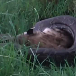 [环球网综合报道]据英国《每日邮报》3月20日报道,近日,一名游客在肯尼亚的马赛马拉自然保护区拍到了惊险刺激的一幕:一条巨蟒竟然将一整只斑鬣狗捕获并吞食殆尽。