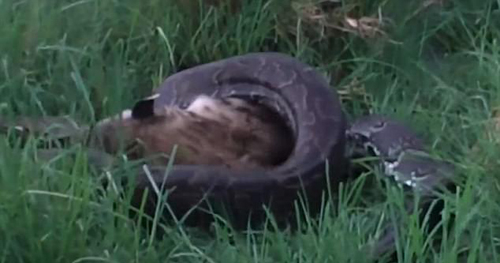 肯尼亚巨蟒分分钟捕食斑鬣狗