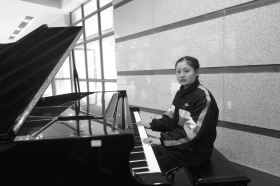 3月21日,长沙市十一中高三学生周应麟。她是湖南第一位被中央音乐学院钢琴系录取的学生。图/记者辜鹏博