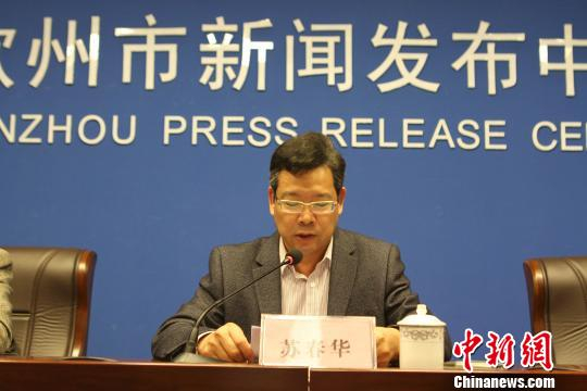 苏春华正在介绍钦州市“壮族三月三?八桂嘉年华”系列活动情况。 凌福龙 摄